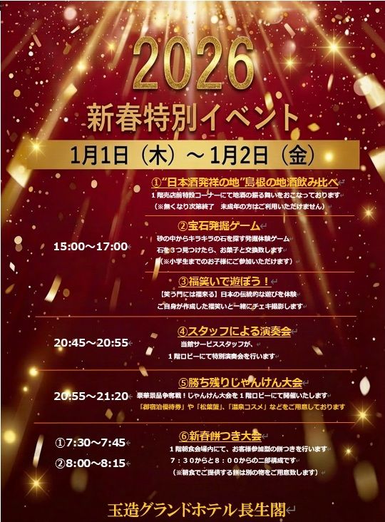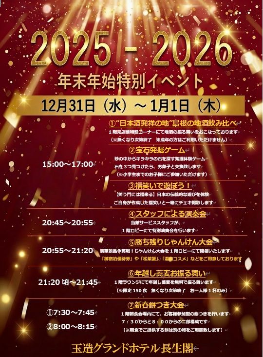 スタッフによる演奏会や、「ペア宿泊券」や「松葉蟹」などの豪華景品争奪じゃんけん大会、