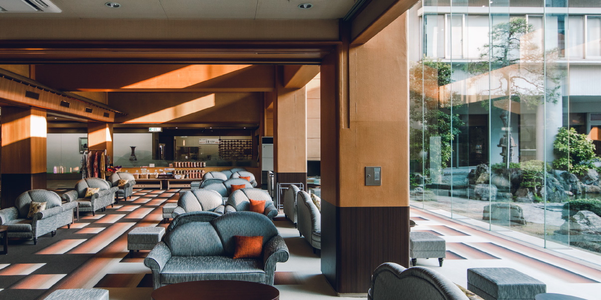 楽しくて快適な、非日常空間をご用意しております 当館では、御来館いただいたお客様の“楽しさ”と“快適さ”をお約束致します。魅力的な商品を多数取り揃えた売店をはじめ、館内を彩る生花や美術品、ロビーにはひと際目を引く大きな“青めのう原石”を配置。広々としたロビーからは、約1,000坪の和風庭園を望め、寛ぎのひとときをお過ごしいただけます。夜は特殊スクリーンでの映像上映イベントを毎晩開催。(※現在機器の不具合により中止しております)また、月に数回、スタッフによる生演奏会も実施しております。