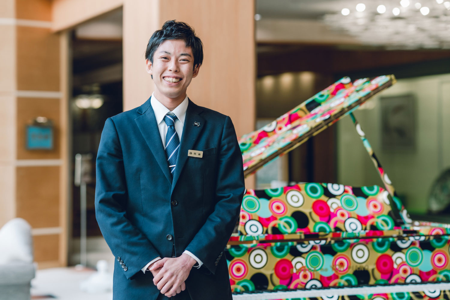 サービス担当として、お客様に最高のご旅行にして頂くためのお手伝いをしております。フロント対応から館内説明のご案内、そしてご夕食提供を通して、お客様の心に響くような接遇を心がけています。またチェックアウト後のお部屋清掃や売店業務なども行っています。